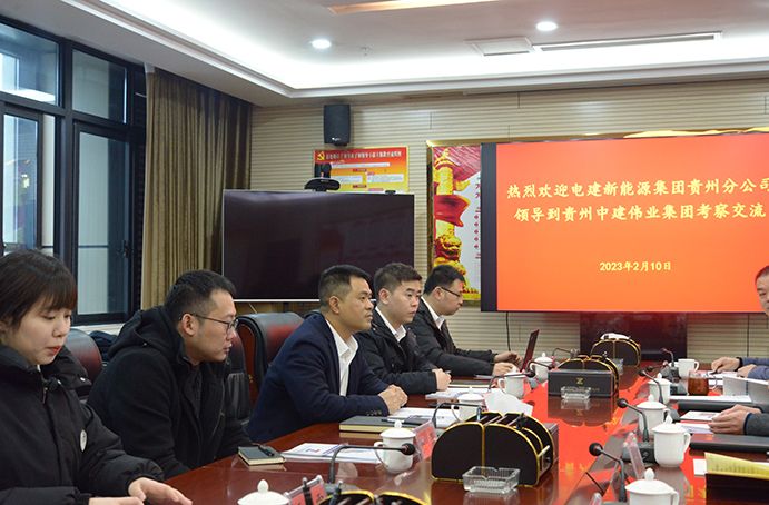 为深化黔东南州新能源资源的合作开发利用,2023年2月10日,央企中电建新能源集团贵州分公司副经理钟辉一行赴新澳门葡京赌场app伟业葡京赌app客户端考察交流,达成初步合作意向。贵州新澳门葡京赌场app伟业葡京赌app客户端党委副书记、总经理冯安翔在葡京赌app客户端17楼会议室热情接待并主持座谈,党委委员、副总经理王引明、王振田,董事长助理张政雄、总经理助理田应钦、经营部经理王剑和参加座谈。