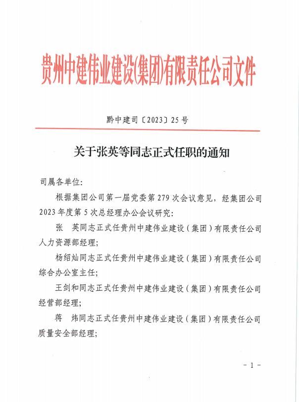 关于张英等同志正式任职的通知